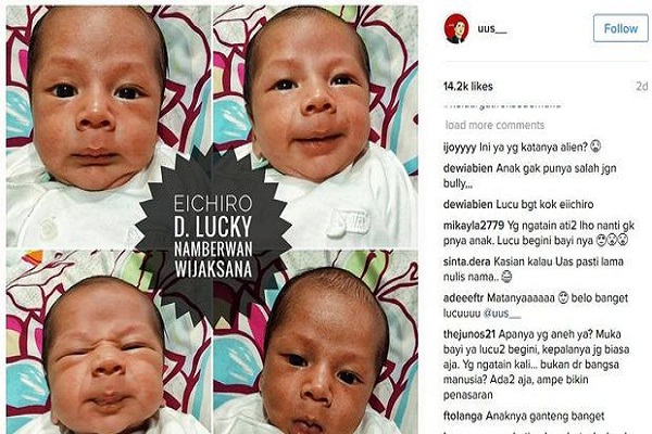 Anak komedian Uus ini dikatai mirip alien oleh warganet @idodolliped_319.