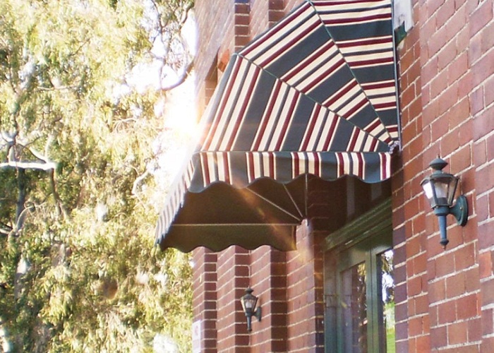 Menggunakan kanopi kain yang berwarna coklat dapat menciptakan suasana yang hangat pada hunian. Dengan model kanopi kain yang satu ini, ditambah aksen garis-garuis kecil mampu memberikan tampilan yang sempurna bila dipadukan dengan cat dinding eksterior warna krem.