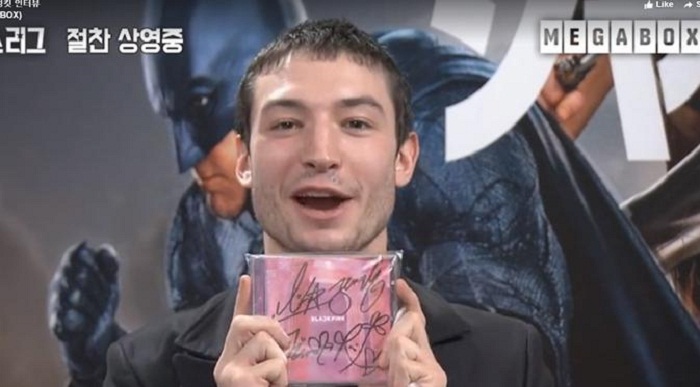 "Benarkah ini ditandatangani Blackpink in my area?" kata Ezra Miller sambil mengutip lirik lagu "Boombayah" dari Blackpink. Ezra Miller masih tidak percaya kalo itu CD dan tanda tangan dari Blackpink, setelah diyakini bahwa itu merupakan CD dan tanda tangan dari Blackpink Ezra Miller makin terlihat gembira.