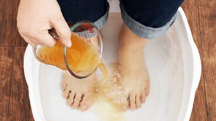 Cuka mengandung asam yang akan membuat bakteri tidak mampu bertahan lama. Cara menggunakannya yaitu dengan merendam kaki menggunakan campuran cuka an empat gelas air hangat selama kurang lebih 10-15 menit.