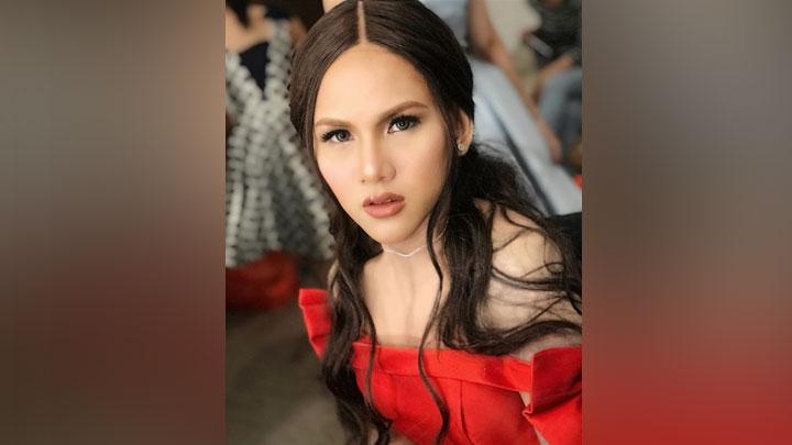 Dalam foto tersebut terlihat Evelyn sangat cantik dengan polesan make up serta rambut palsu panjang. Tak lupa dia juga mengenakan anting- anting, kalung dan gaun berwarna merah yang menambah feminim penampilannya.