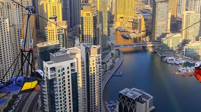 Selain itu, ada juga tempat wisata yang memacu adrenalin kalian di XLine Dubai Marina. Ini merupakan permainan zipline sepanjang 1 km yang menghubungkan Menara Amwaj di Jumeirah Beach Residence hingga teras Dubai Marina Mall.