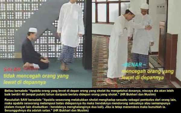 “Andaikan seseorang yang lewat di depan orang yang shalat itu mengetahui dosanya perbuatan itu, niscaya diam berdiri selama 40 tahun itu lebih baik baginya dari pada lewat”