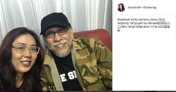 "Ketika bertemu beliau tiba2 langsung nangis,gak tau kenapa. Habis nangis tetep eksis minta poto," tulis Soimah dalam keterangan foto di Instagramnya, Jumat (12//1/2018).
