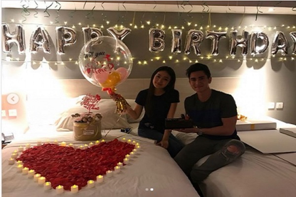 Hal tersebut diunggah oleh putra sulung Venna Melinda ini di akun instagram pribadinya. Dalam foto tersebut nampak Wilona dan Verrel berpose sambil memegang kue tart, dalam foto yang lainnya, mereka berdua berpose di sebelah bentuk hati yang dibentuk dari lilin- lilin kecil dan bunga mawar merah yang cantik. Terlihat balon bertuliskan Happy Birthday di belakang mereka berdua. Dan tak ketinggalan balon bertuliskan 'Will You be Mine?' yang dipegang oleh Natasha Wilona.