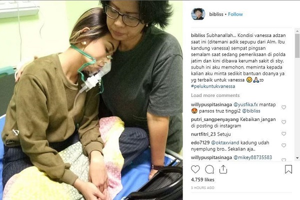 Vanessa Angel pingsan saat akan melakukan pemeriksaan atas kasus yang menjerat dirinya, dan saat ini Vanessa Angel telah di rawat di rumah sakit Bhayangkara Jatim.